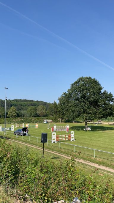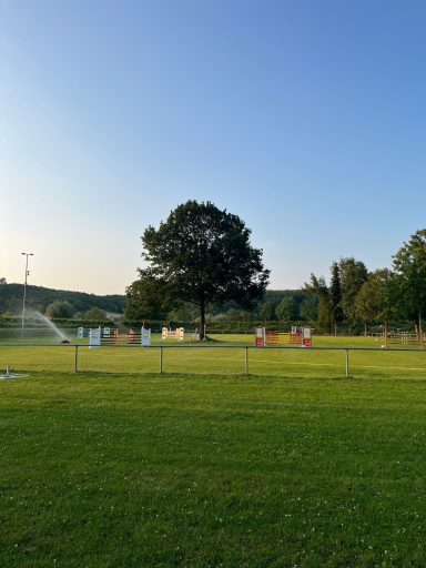 Der Rasenplatz steht für Springprüfungen auf unseren Heimturnieren zur Verfügung. Regelmäßige Pflege und Kontrollen bieten für den Springsport optimale Bedingungen.