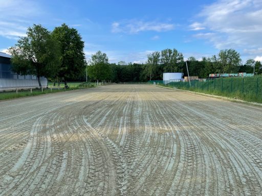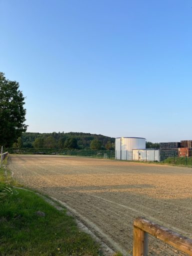 Unser Außenplatz hat einen Sandboden ist ca. 25x140m groß. Damit bietet er viel Platz sowohl für das Dressurtraining als auch für Springeinheiten.